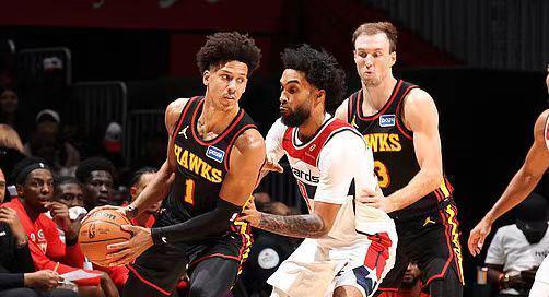 老鹰过去3场连输活塞、快船与掘金遭遇3连败,奇才过去两场连输76人与凯尔特人遭遇2连败。本场老鹰缺少特雷-杨、波尔津吉斯、托平等,奇才缺少米德尔顿、库利巴利、萨尔与基斯珀特等。首节开局老鹰4-10落后,老鹰之后继续被压制12-18落后,杰伦攻传结合引领一波23-5攻势反超12分。奇才连得5分,首节结束老鹰35-28领先奇才。老鹰27中12超过5成准星,但三分8中1,杰伦6中5得到11+3+3,奇才20中10,其中三分10中4。